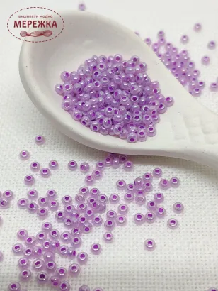 Бісер 37128 круглий з промальованою серединкою фіолетового кольору.