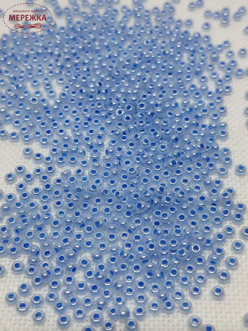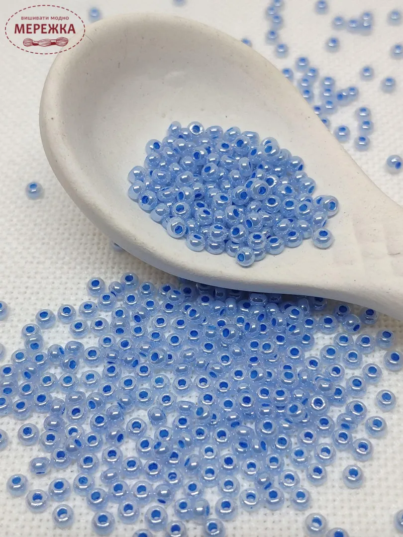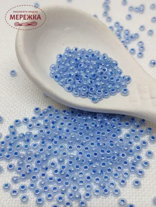 Бісер 37336 круглий з промальованою серединкою голубого кольору.