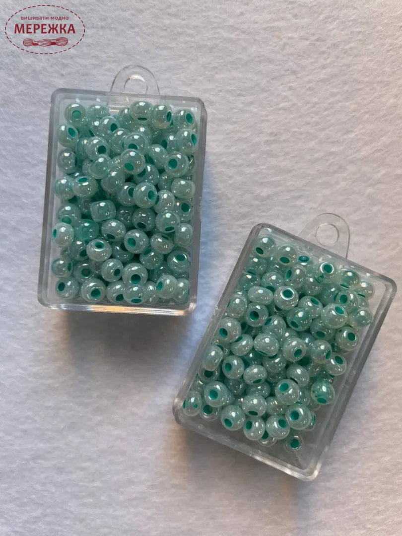 Бісер 37158 перламутровий, біло-зеленого кольору.