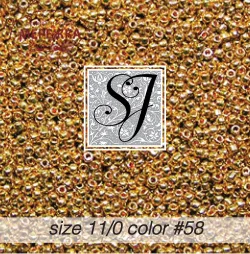 Розмір SJ Designs 11/0 Скляний бісер кольору №58 Золотий, непрозорий бісер із оцинкованою* металевою поверхнею.