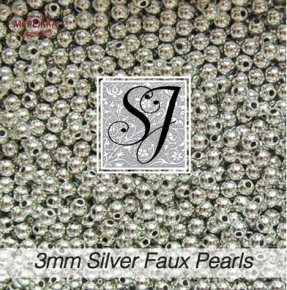 SJ Designs Faux Pearls, 3 mm Round SILVER