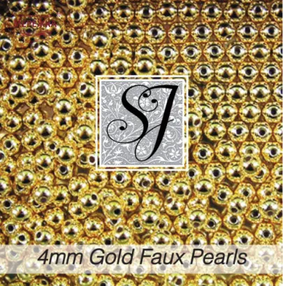 SJ Designs Faux Pearls, 4 mm Round GOLD