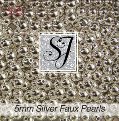 SJ Designs Faux Pearls, 5 mm Round SILVER