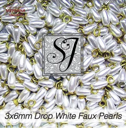 SJ Designs Faux Pearls Drop 3*6 mm White