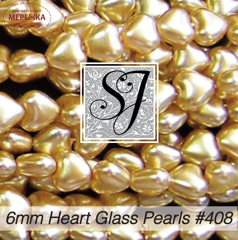 SJ Designs Heart Glass Pearls, 6 mm Gold Luster #408