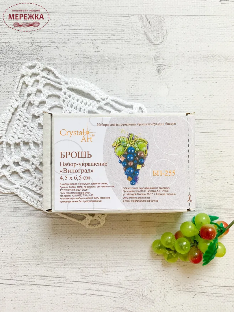 Набір для вишивання бісером CrystalArt Брошка, Виноград БП-255