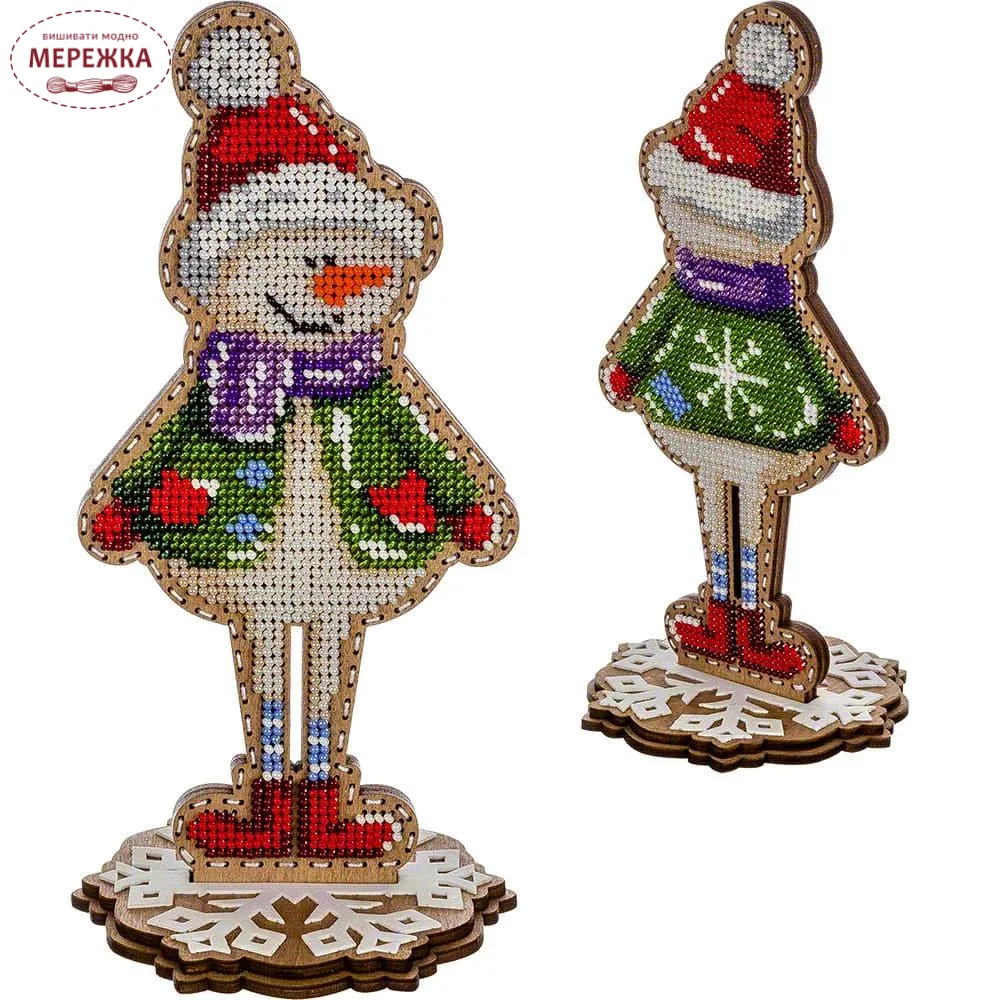 Набір для вишивання новорічної іграшки на підставці на перфорованій фанері від вітчизняного виробника фірми "WonderlandCrafts". Іграшка двохстороння.