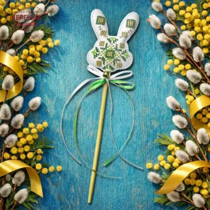 Топер однаково гарний з обох боків, чудово прикрасить великодній кошик, паску або стане оригінальним елементом декору та приємним подарунком для рукодільниці.