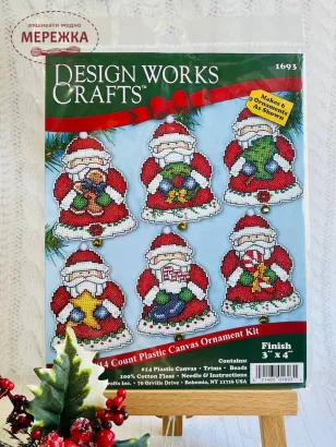 В набір входить пластикова канва фірми Darice, та все необхідне щоб вишити 6 новорічних іграшки.