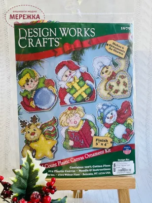 В набір входить пластикова канва фірми Darice, та все необхідне щоб вишити 6 новорічних іграшки.