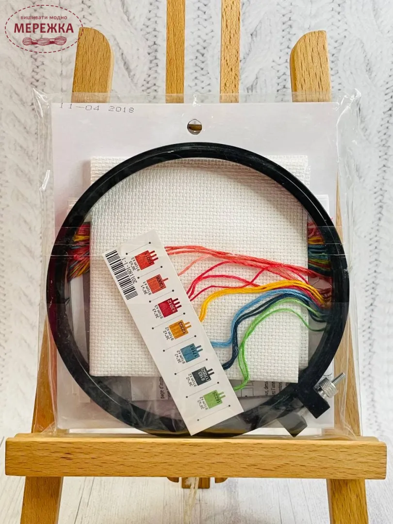 До набору додаються якісні букові п'яльця, на яких ви будете вишивати дизайн, а потім можна зрізати залишки тканини і у п'яльцях повісити картину на стіну.
