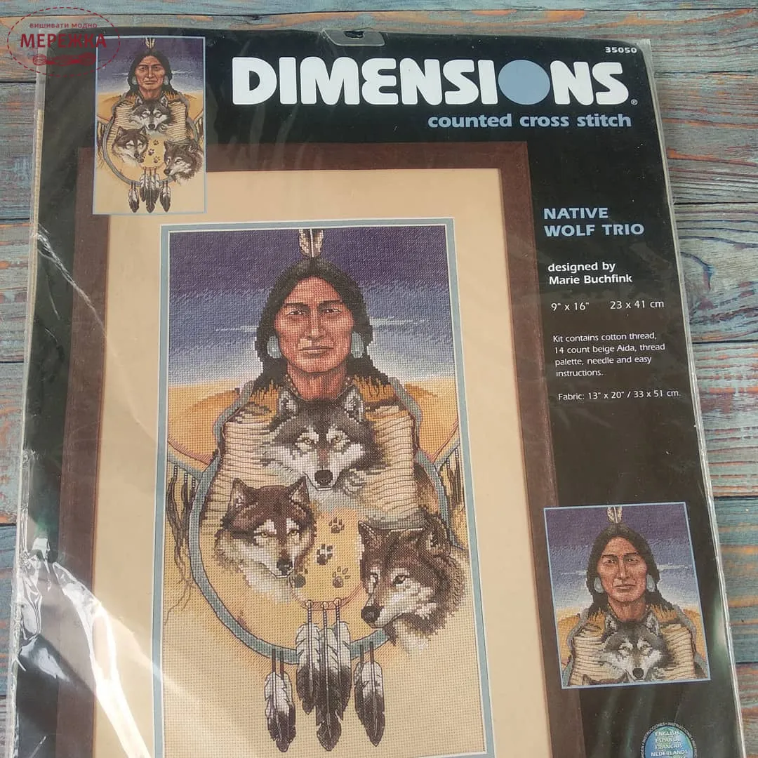 Набір для вишивання хрестиком Dimensions Native of Wolf Trio (Вихідець з вовчої трійки) 35050