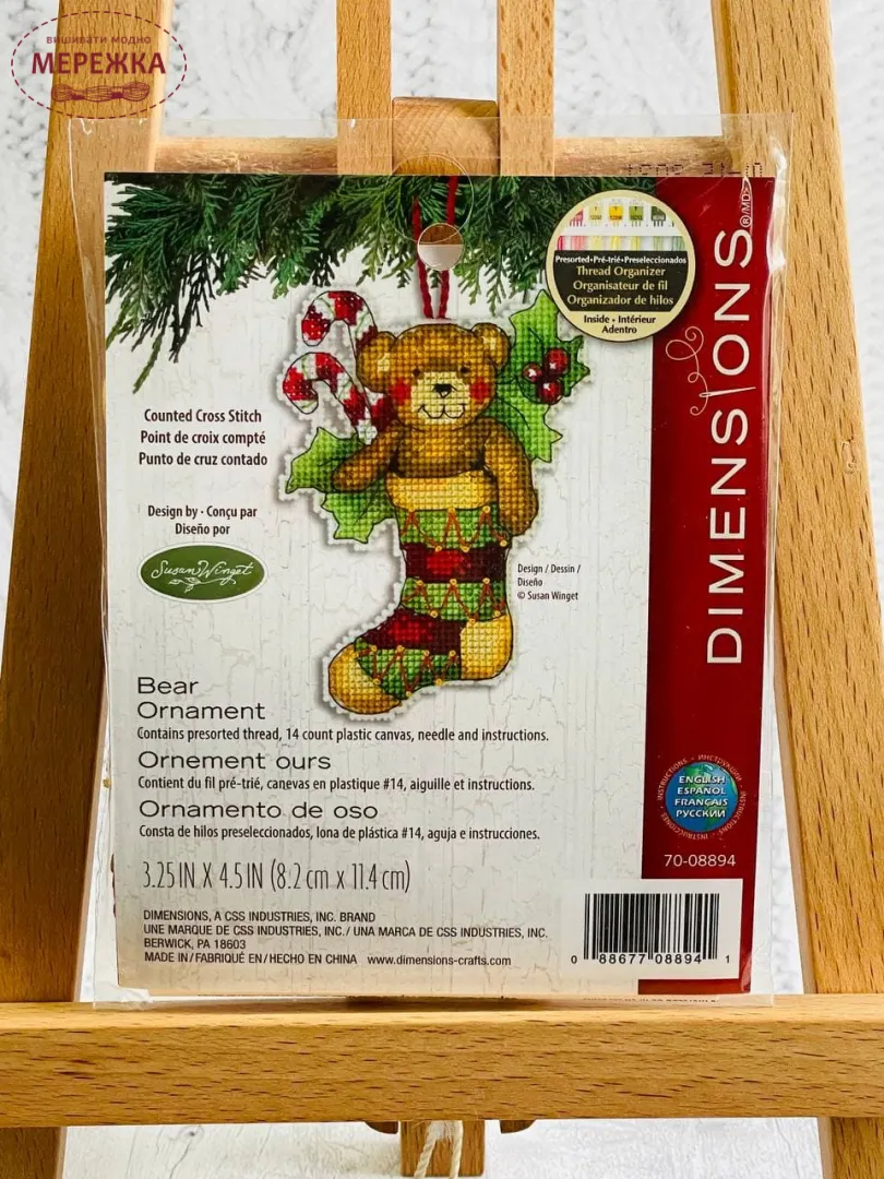 Набір для вишивання хрестиком Dimensions Новорічна іграшка Ведмедик 70-08894