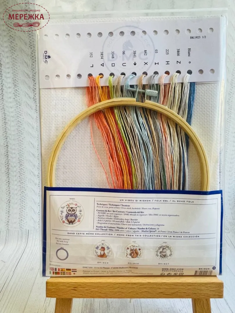 Набір для вишивання хрестиком від фірми DMC укомплектований усім необхідним, до складу набору ще додатково входять п'яльця.