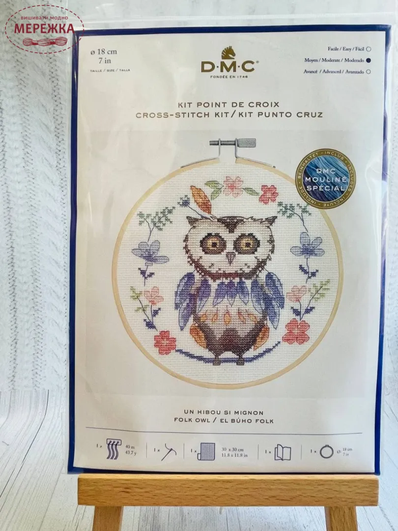 Набір для вишивання хрестиком DMC Сова+пяльця ВК1925