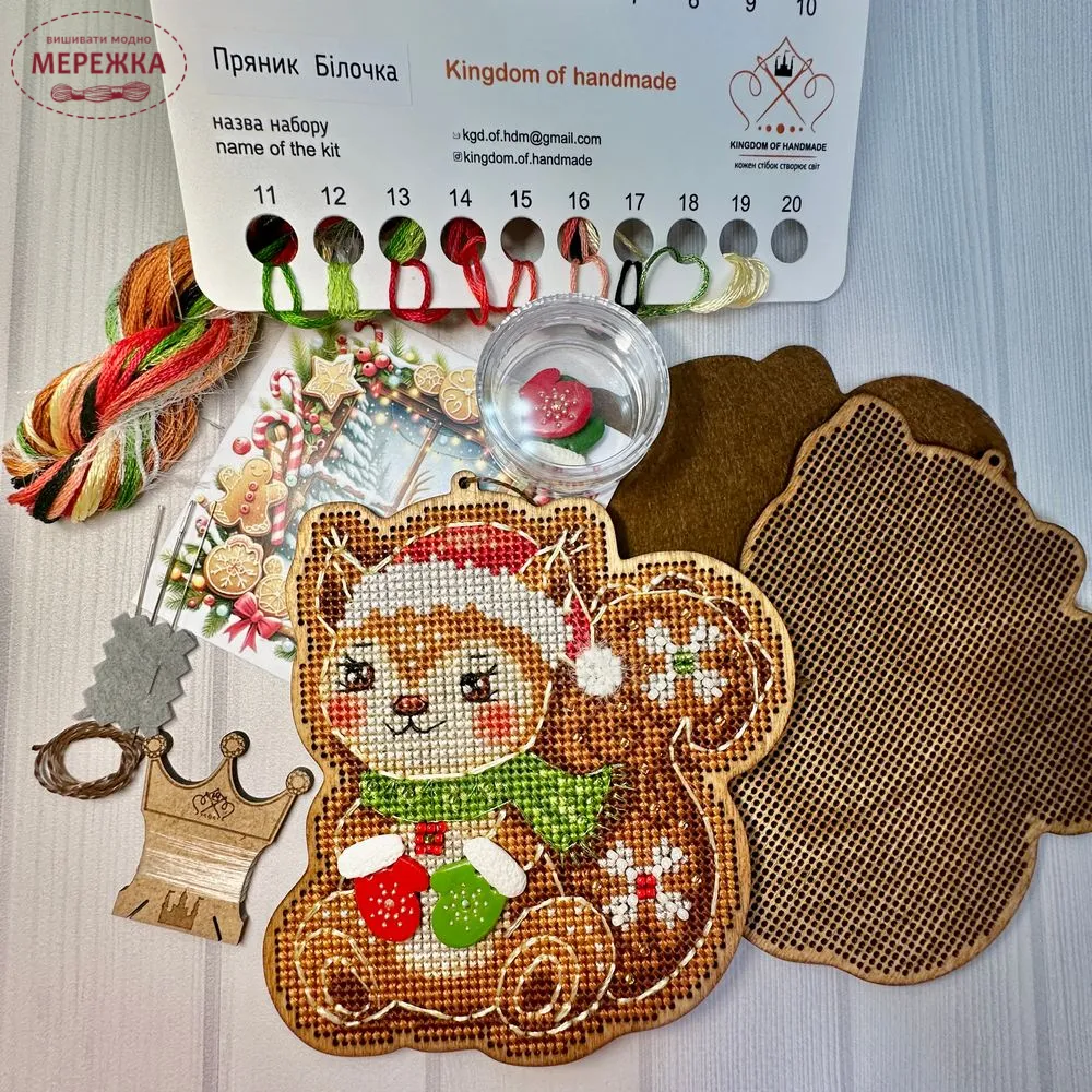 Набір для вишивання хрестиком Kingdom of Handmade по дереву Пряник Білочка GB-03