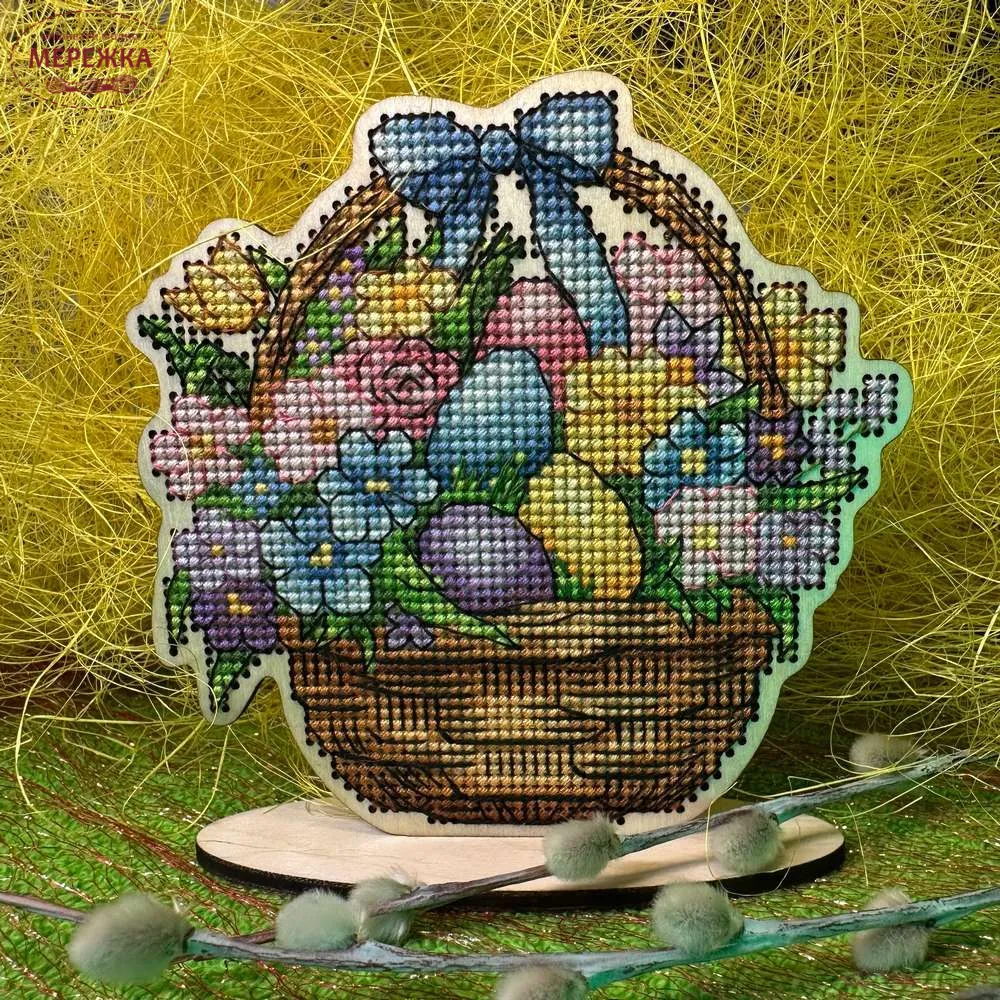 Набір для вишивання хрестиком Kingdom of Handmade по дереву Великодній кошик VK-01