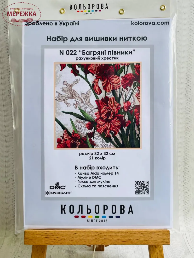Набір для вишивання хрестиком Кольорова Багряні півники N022