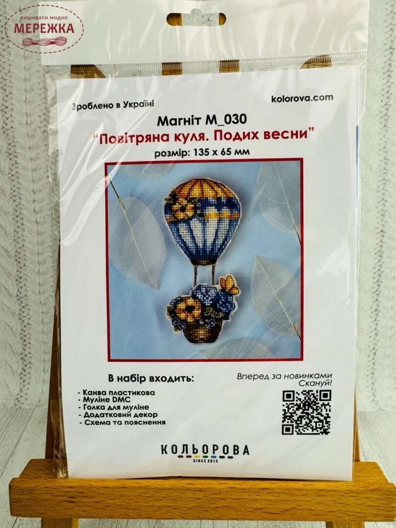 Набір для вишивання хрестиком Кольорова Магніт "Повітряна куля. Подих весни" М_030