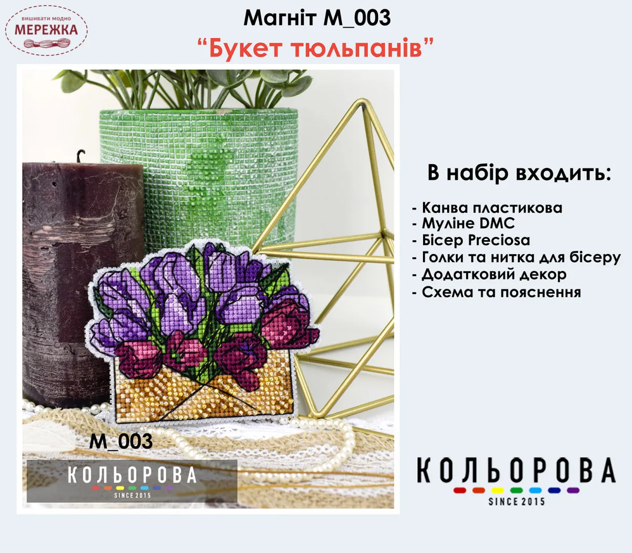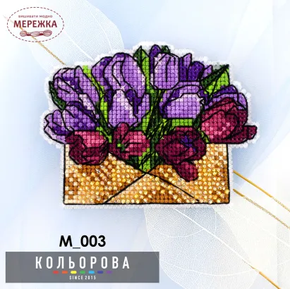 Набір для вишивання хрестиком Кольорова Магніт "Букет тюльпанів" М_003