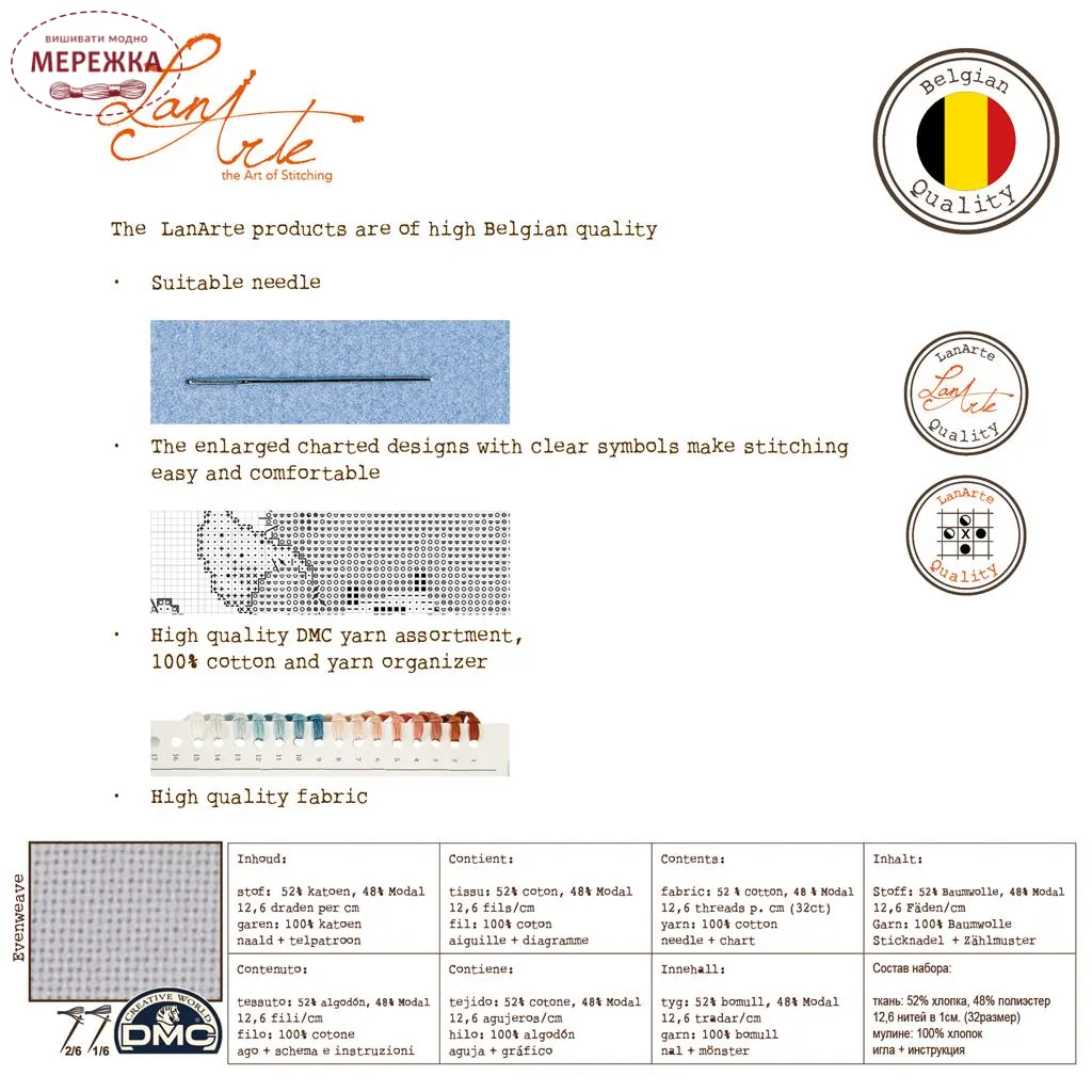 Фірма Lanarte відома своїми якісними наборами, адже вони укомплектовані найкращими матеріалами, провідних європейських виробників.