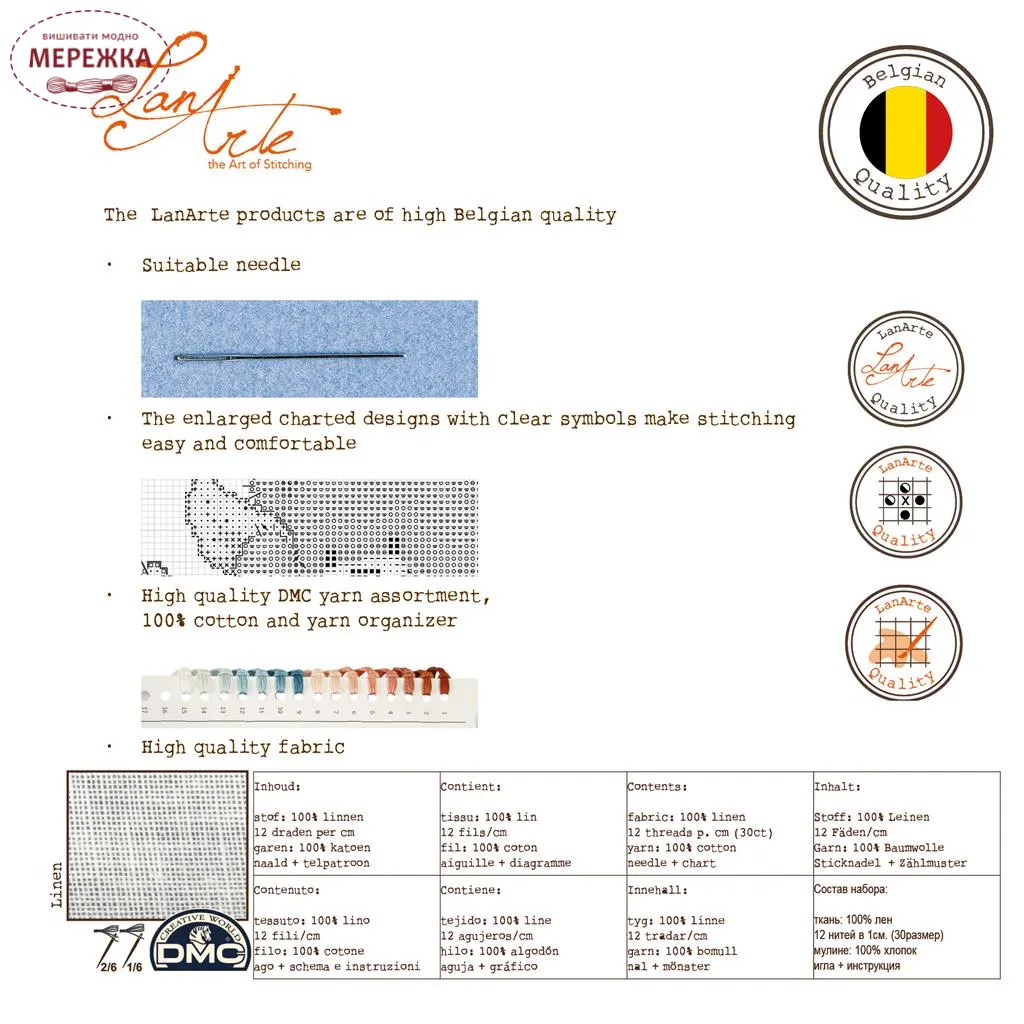Фірма Lanarte відома своїми якісними наборами, адже вони укомплектовані найкращими матеріалами, провідних європейських виробників.
