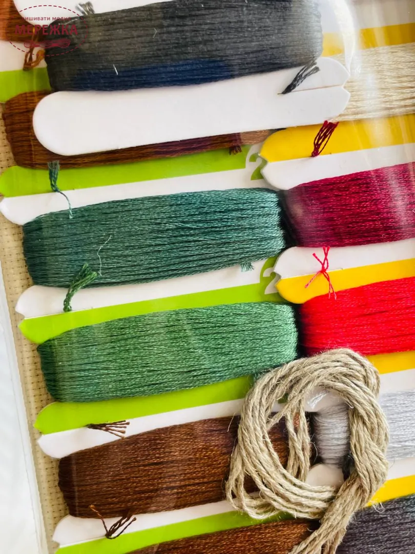 До набору входять матеріали провідних виробників, а саме: тканина Zweigart, муліне DMC.