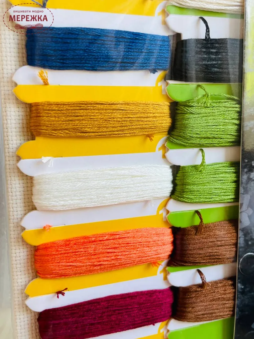 До набору входять матеріали провідних виробників, а саме: тканина Zweigart, муліне DMC.