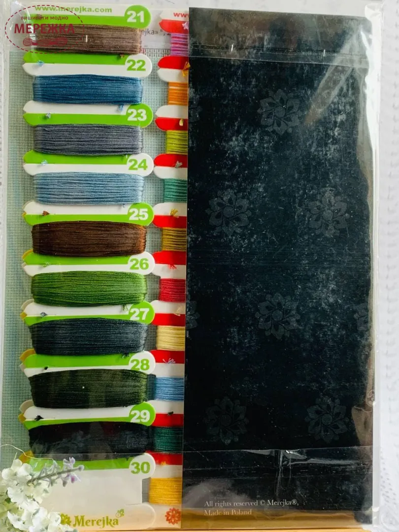 До набору входять матеріали провідних виробників, а саме: тканина Zweigart, муліне DMC.
