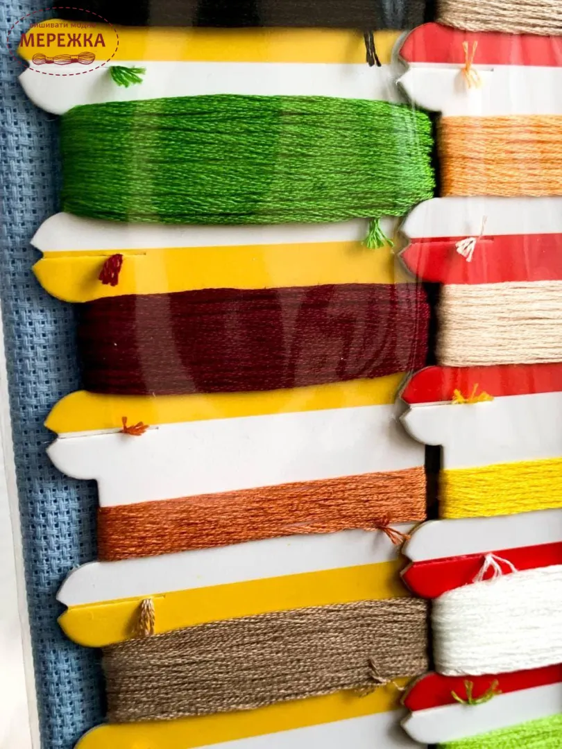 До набору входять матеріали провідних виробників, а саме: тканина Zweigart, муліне DMC.
