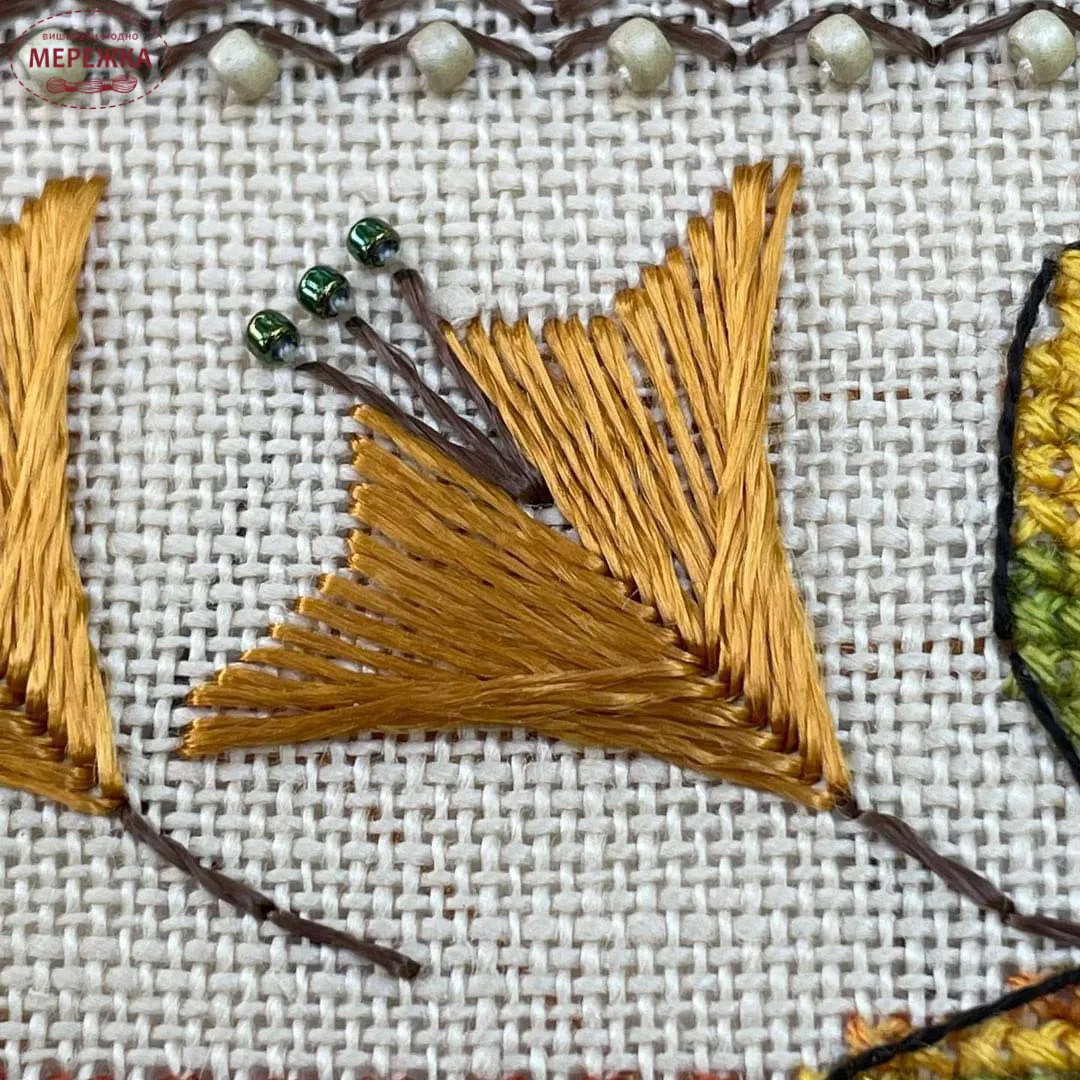 Окрім хрестика присутні різні декоративні шви, бекстіч, бісер, трежерси.