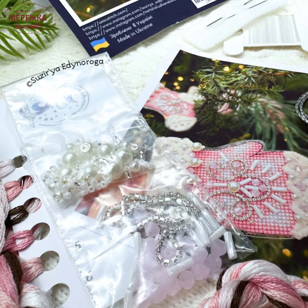 Чудовий набір "Рожева рукавичка" для вишивання хрестиком та бісером від українського дизайнера та виробника "Сузір’я Єдинорога" (Наталя Лужанська) .