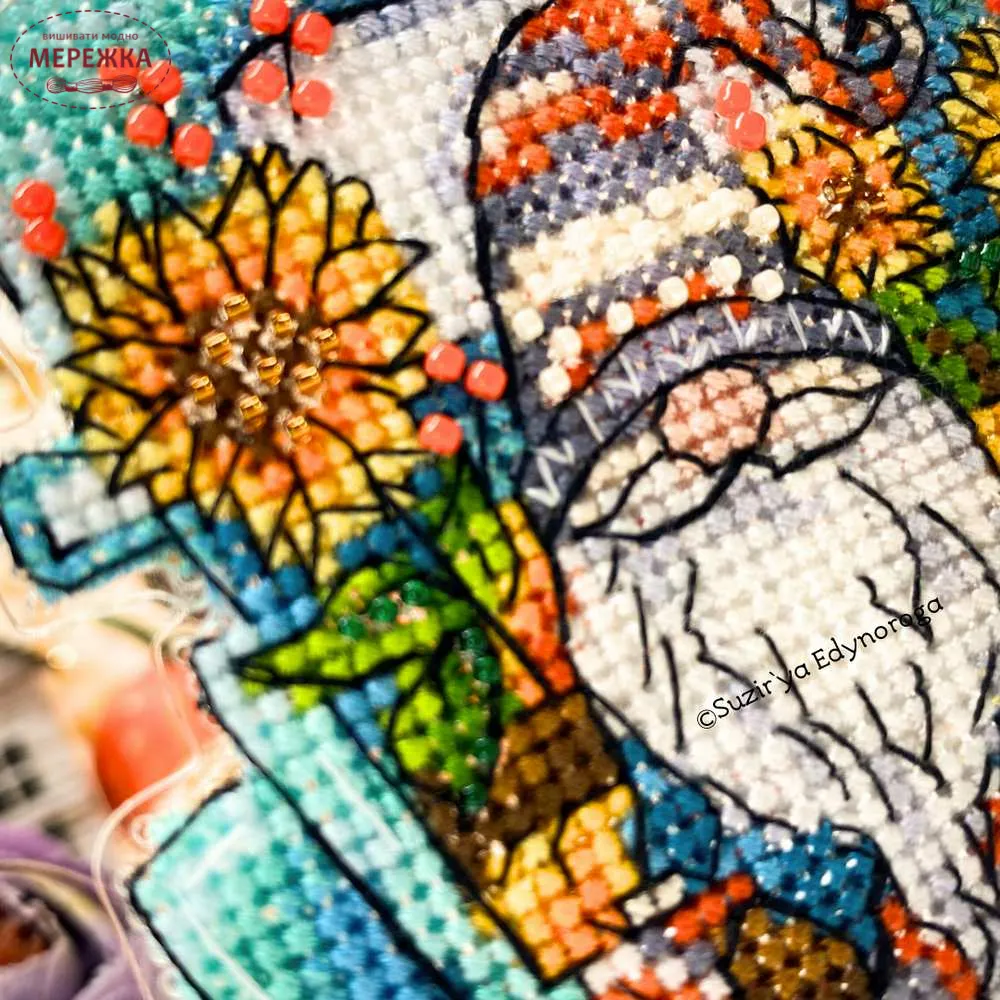 Embroidery technique Mixed embroidery (cross + beads)