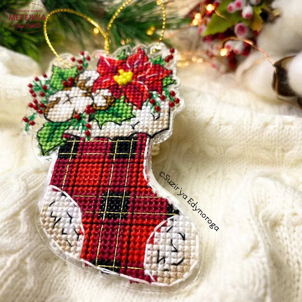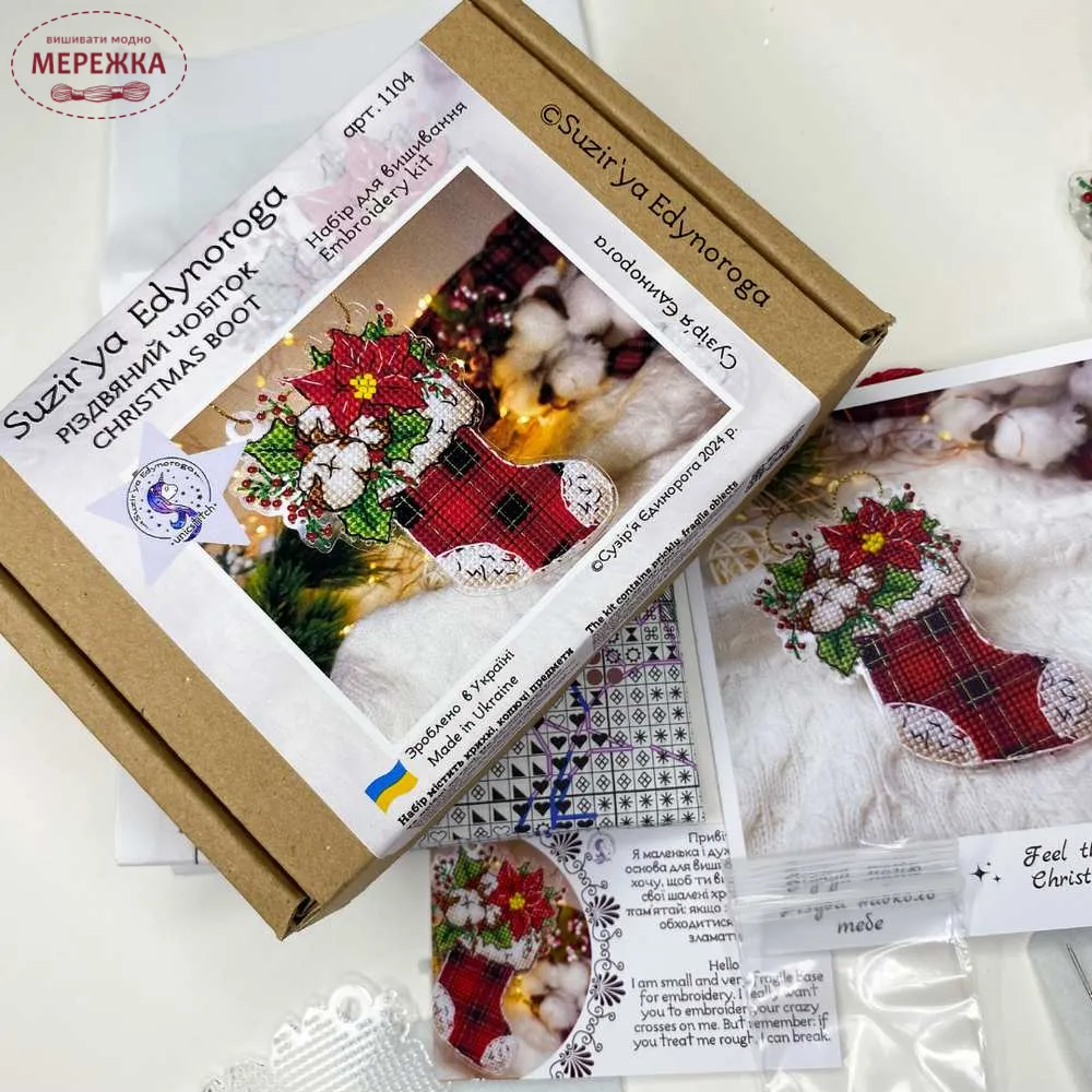 Чудовий набір "Різдвяний чобіток" для вишивання хрестиком та бісером від українського дизайнера та виробника "Сузір’я Єдинорога" (Наталя Лужанська) .