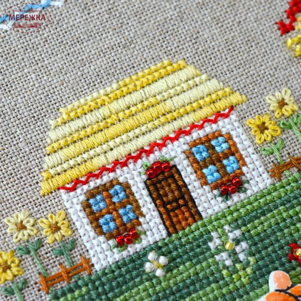 В схемі присутні окрім хрестика бекстіч, віялові стібки, настилування, козлик.