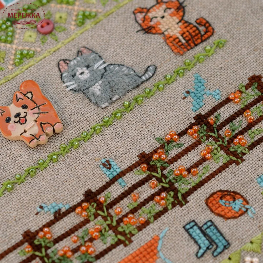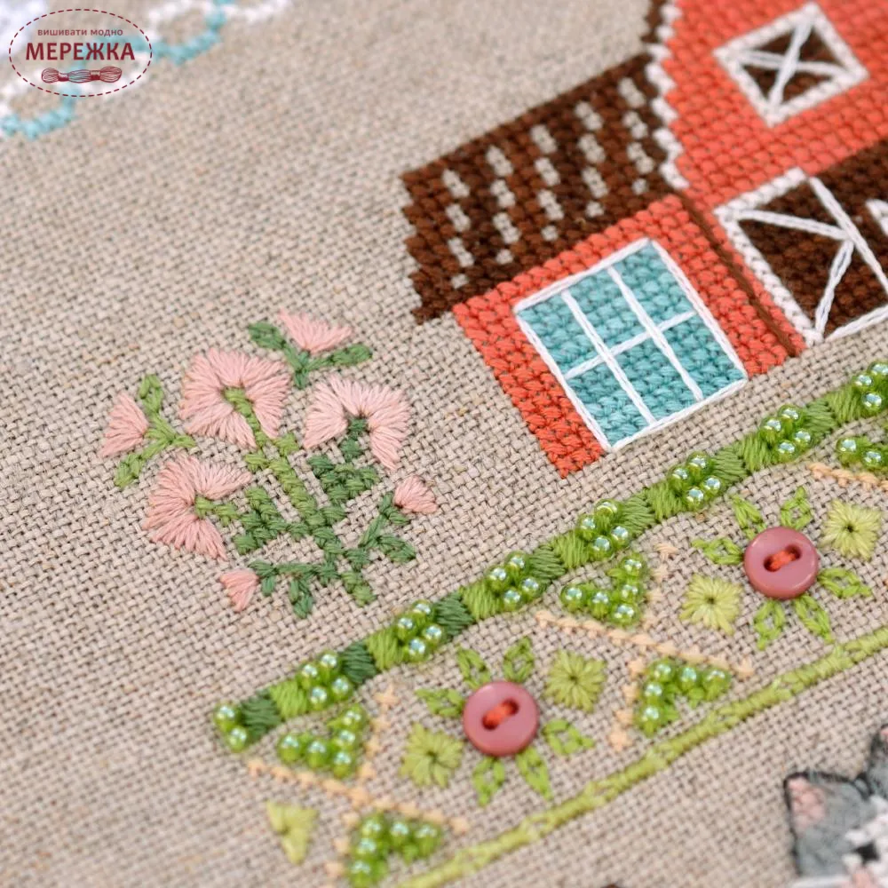 В схемі присутні окрім хрестика різні вічка, віялові стібки, настилування, болгарський хрестик, козлик.