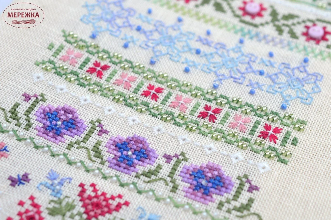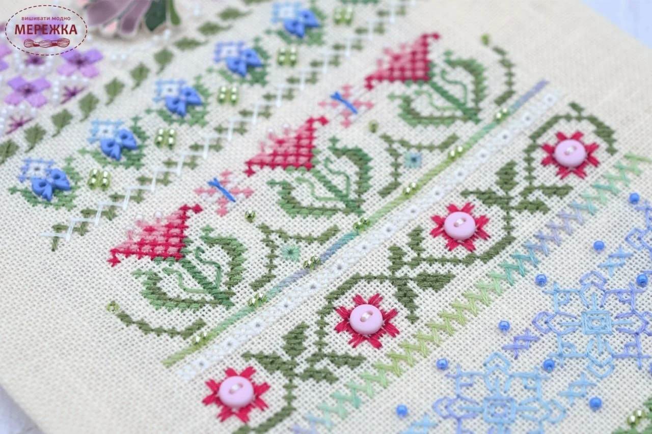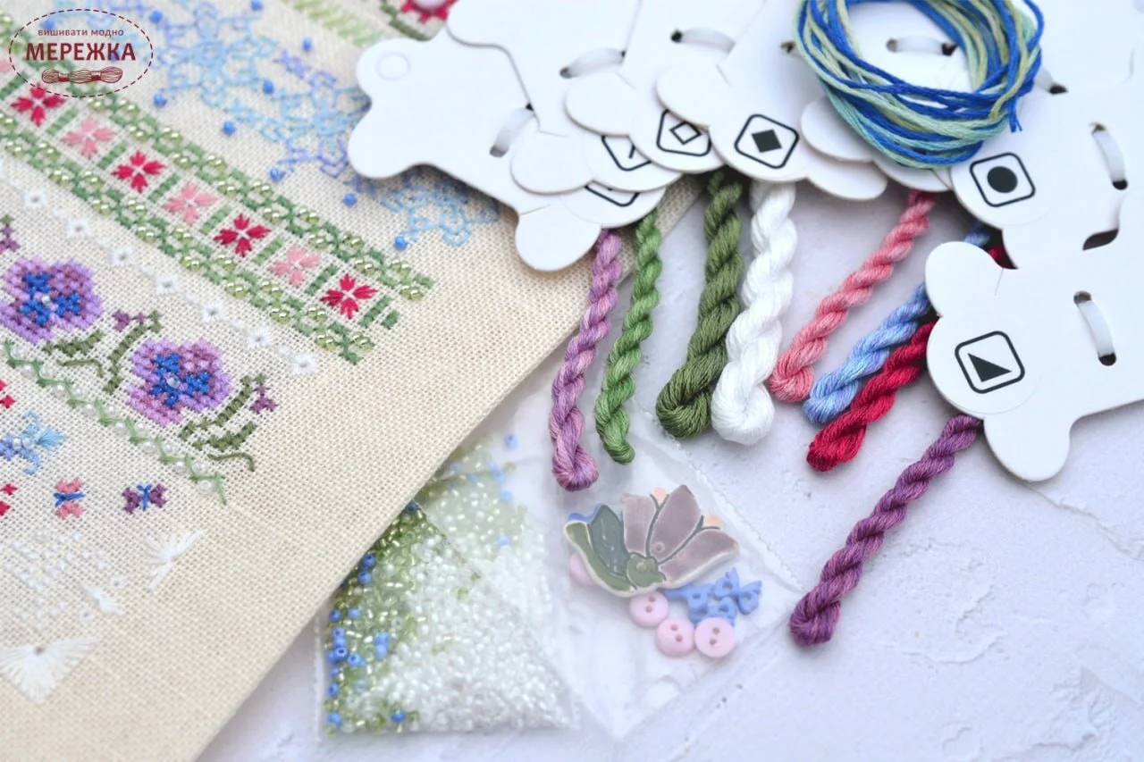 Набір для вишивання хрестиком від українського виробника Tela Artis. Окрім хрестика присутній бекстіч, настилування, вічки, віялові стібки, козлик.