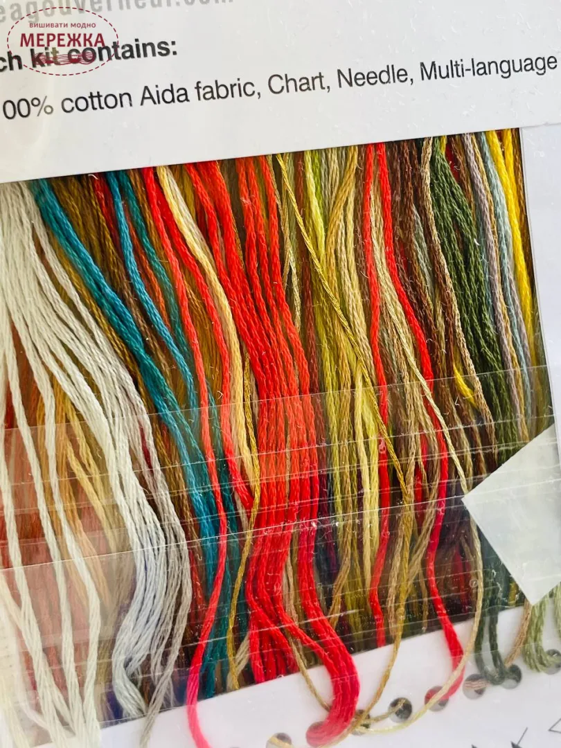 Набір чудово укомплектований, схема чітка та зрозуміла, нитки у наборі фірми DMC, тканина найкращої якості, фірми Zweigart.