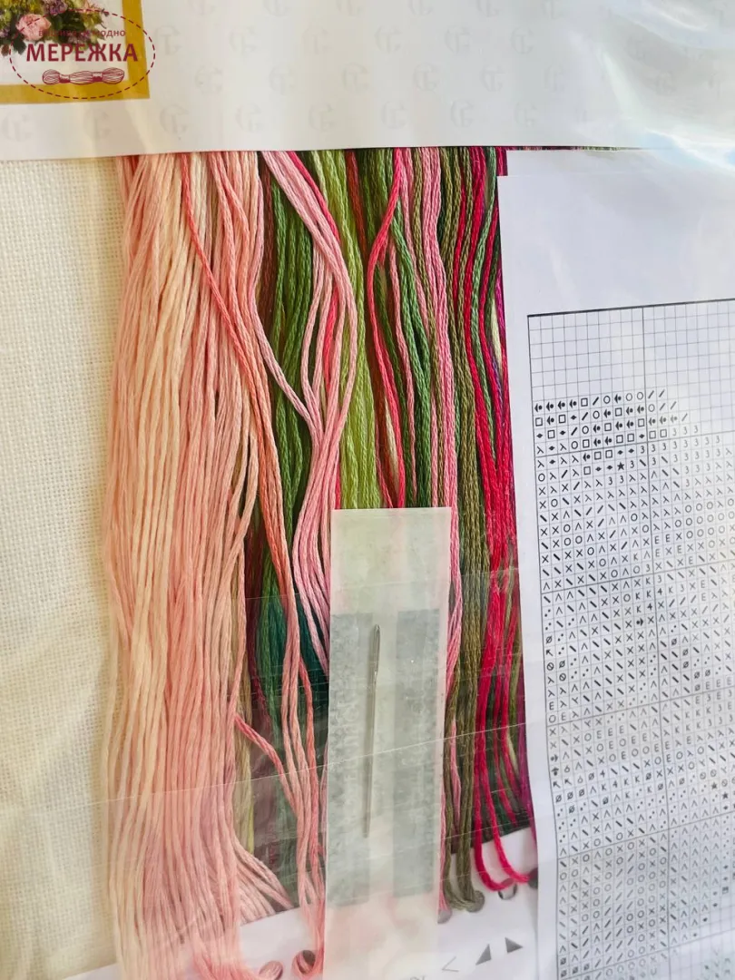 Набір чудово укомплектований, схема чітка та зрозуміла, нитки у наборі фірми DMC, тканина найкращої якості, фірми Zweigart.