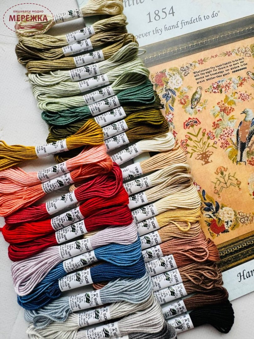 Увесь комплект ниток від Au Ver à Soie (Франція) до схеми для вишивання хрестиком Anne Thomas 1854 від Hands Across the Sea Samplers.