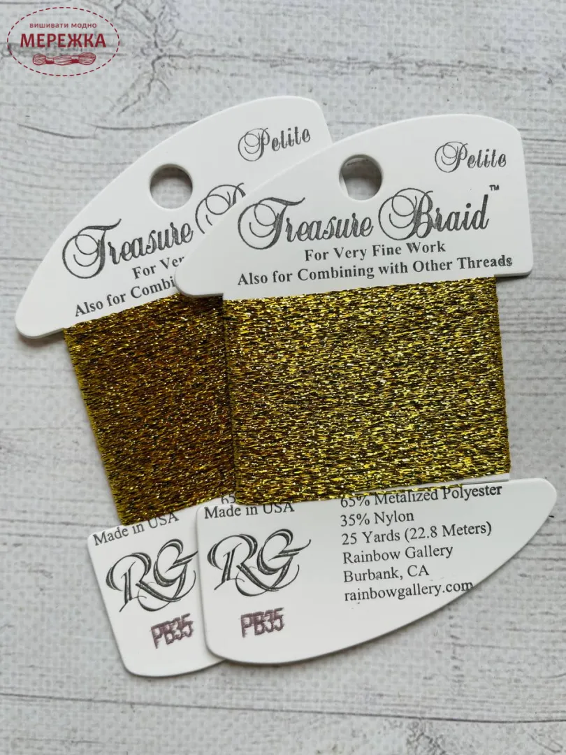 Treasure Braid Petite - металізована нитка від Rainbow Gallery (виробництва США або Японії).