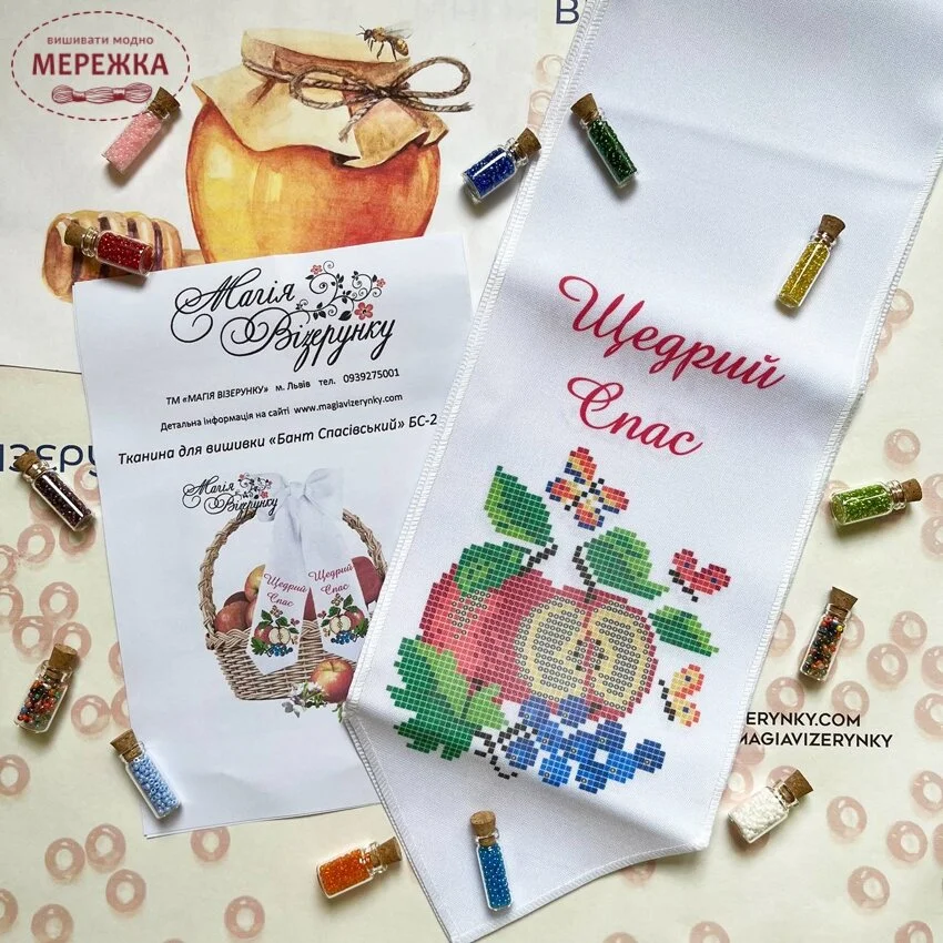Схема для вишивання бісером спасівського банта на кошик від Магії Візерунку. Ваш кошик отримає безліч компліментів завдяки вишитому банту.