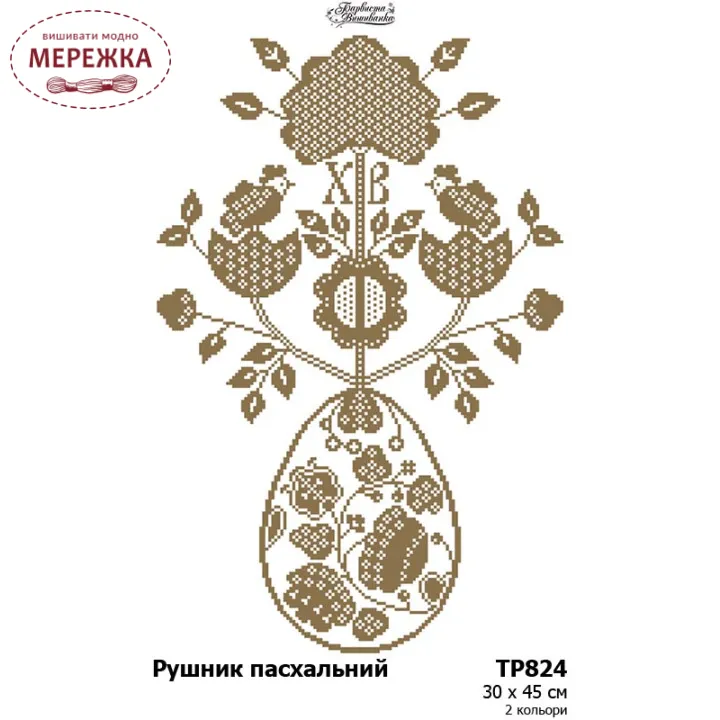 Схема для вишивання бісером та нитками великоднього рушника ТР824 від виробника "Барвиста вишиванка". З зображенням великодньої композиції.