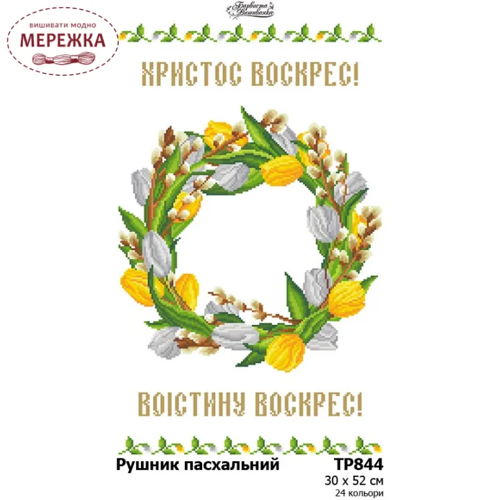 Схема для вишивання бісером та нитками великоднього рушника ТР844 від виробника "Барвиста вишиванка". З зображенням великодньої композиції.