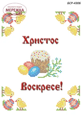 Схема для вишивання бісером великоднього рушника БСР-4306 від виробника "Сяйво". Із великодніми мотивами: зображенням паски, писанок та курчаток.
