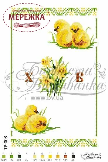 Схема для вишивання бісером дитячого великоднього рушника ТР008 від виробника "Барвиста вишиванка". З зображенням милих курчаток та нарцисів.