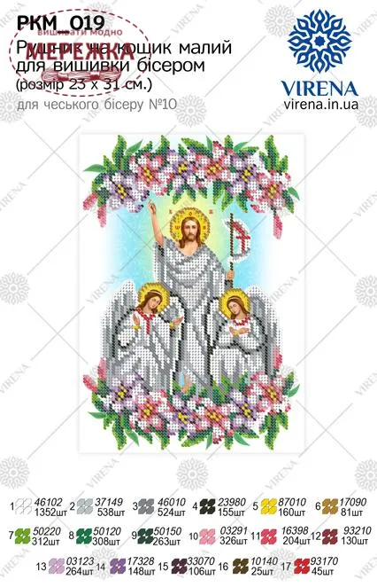 Схема для вишивання бісером дитячого великоднього рушника РКМ-019 від виробника "Virena". З зображенням воскресіння Ісуса Христа.