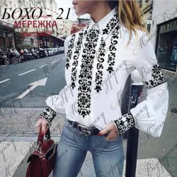 Блуза жіноча Магія візерунку Бохо-21, біла домоткана