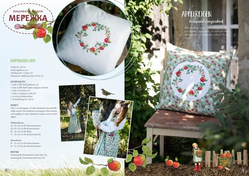 Ви знайдете такі проекти, як подушки, ковдри, картини, серветки та доріжки, сумки, практичне зберігання та красиві прикраси, пошиті з бавовняних тканин та льону.