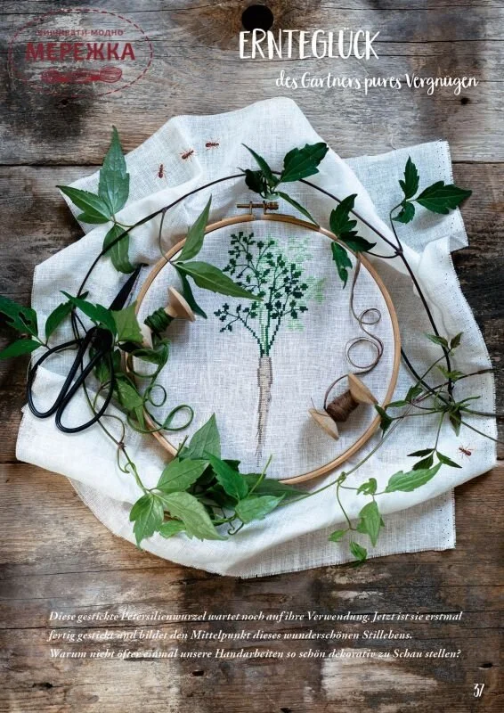 У цій книзі рукоділля ви знайдете численні чудові схеми для вишивки хрестиком на садову тематику. Ми проведемо вас крізь сезони від посіву до збору врожаю. Дамо вам інструкції та натхнення для спеціальних швейних проектів, які принесуть садове щастя в наші житлові приміщення.